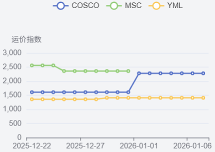 随着1月份各船司纷纷拉涨运价,预计1月上旬,地西运价将奔向高位。