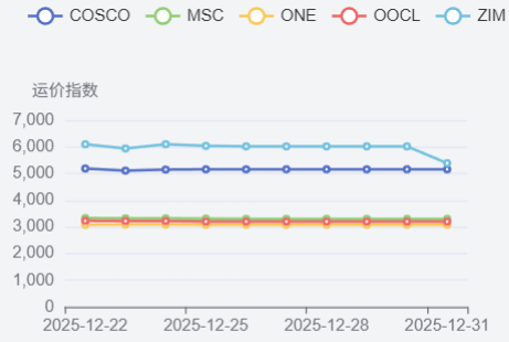 南美航线12月的货量疲软,叠加前期运力过剩,导致运价下滑。虽然春节临近,但预计1月运价仍将保持低位水平。