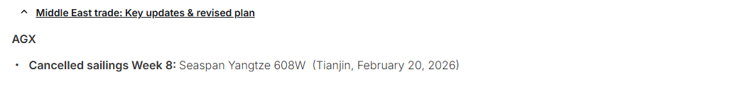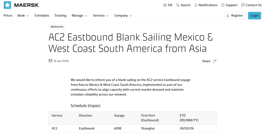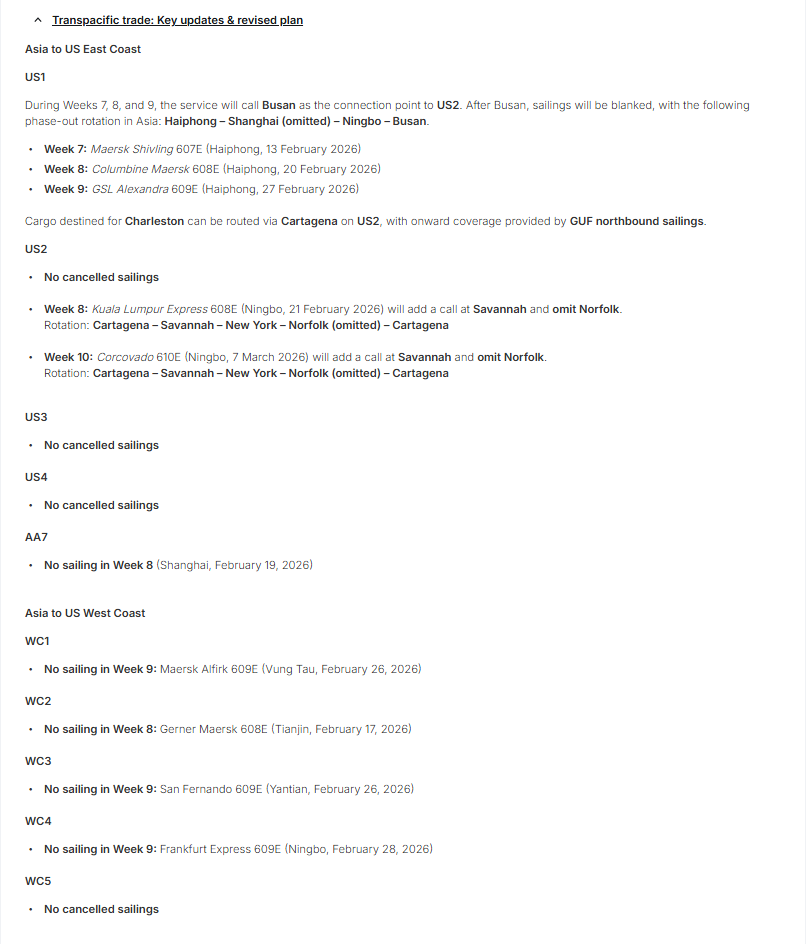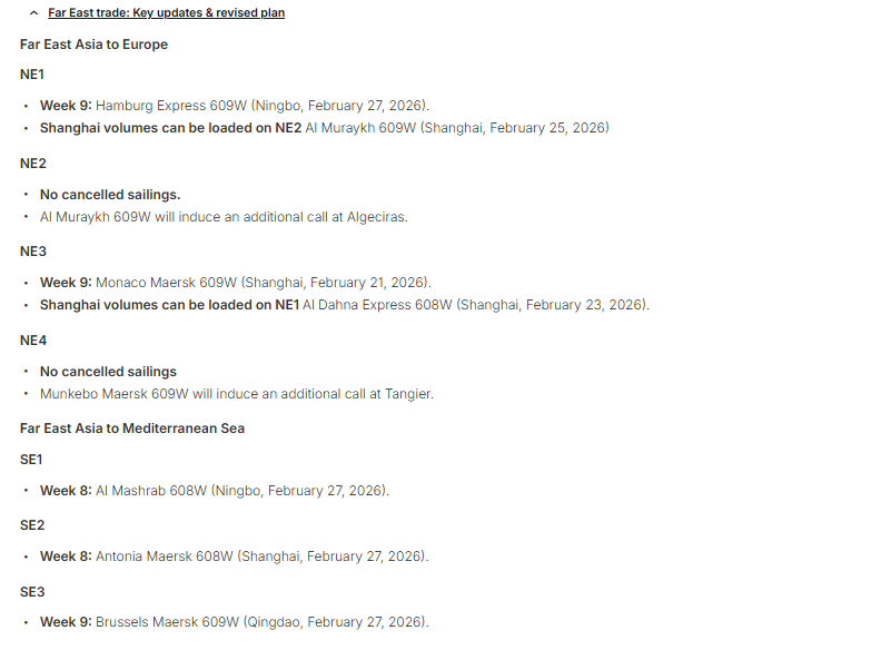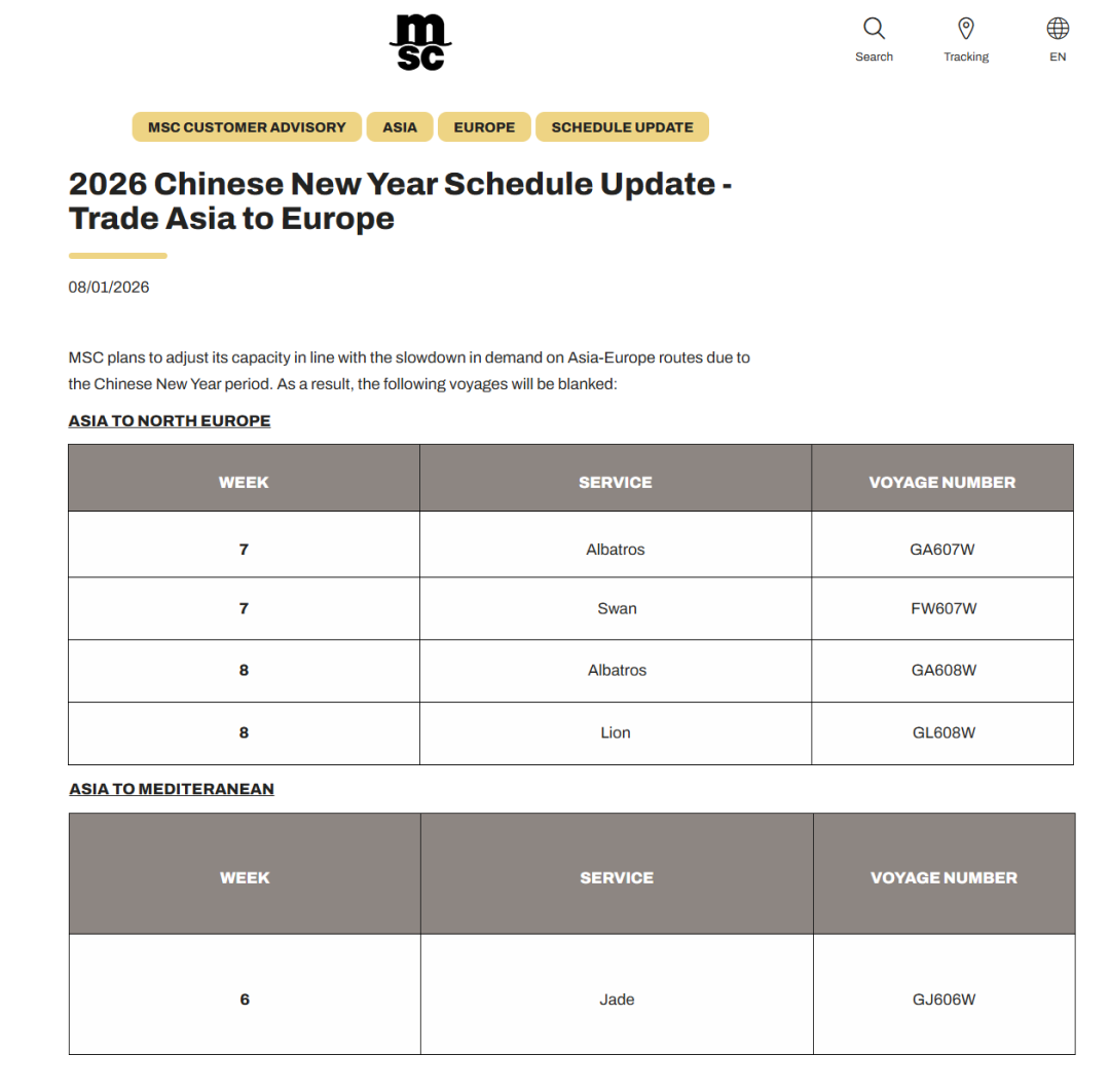 MSC称,由于春节期间亚欧航线需求放缓,计划调整运力。