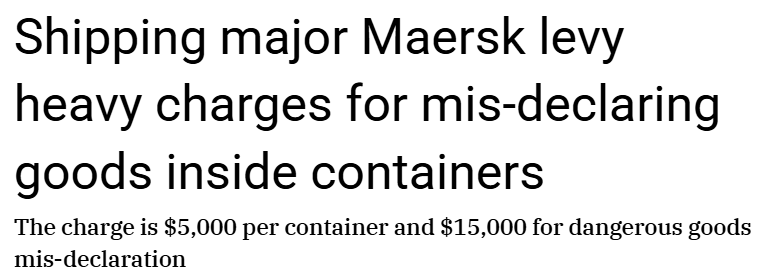 近日,马士基发布新规,宣布大幅提高对集装箱货物重量申报不实行为的处罚力度。